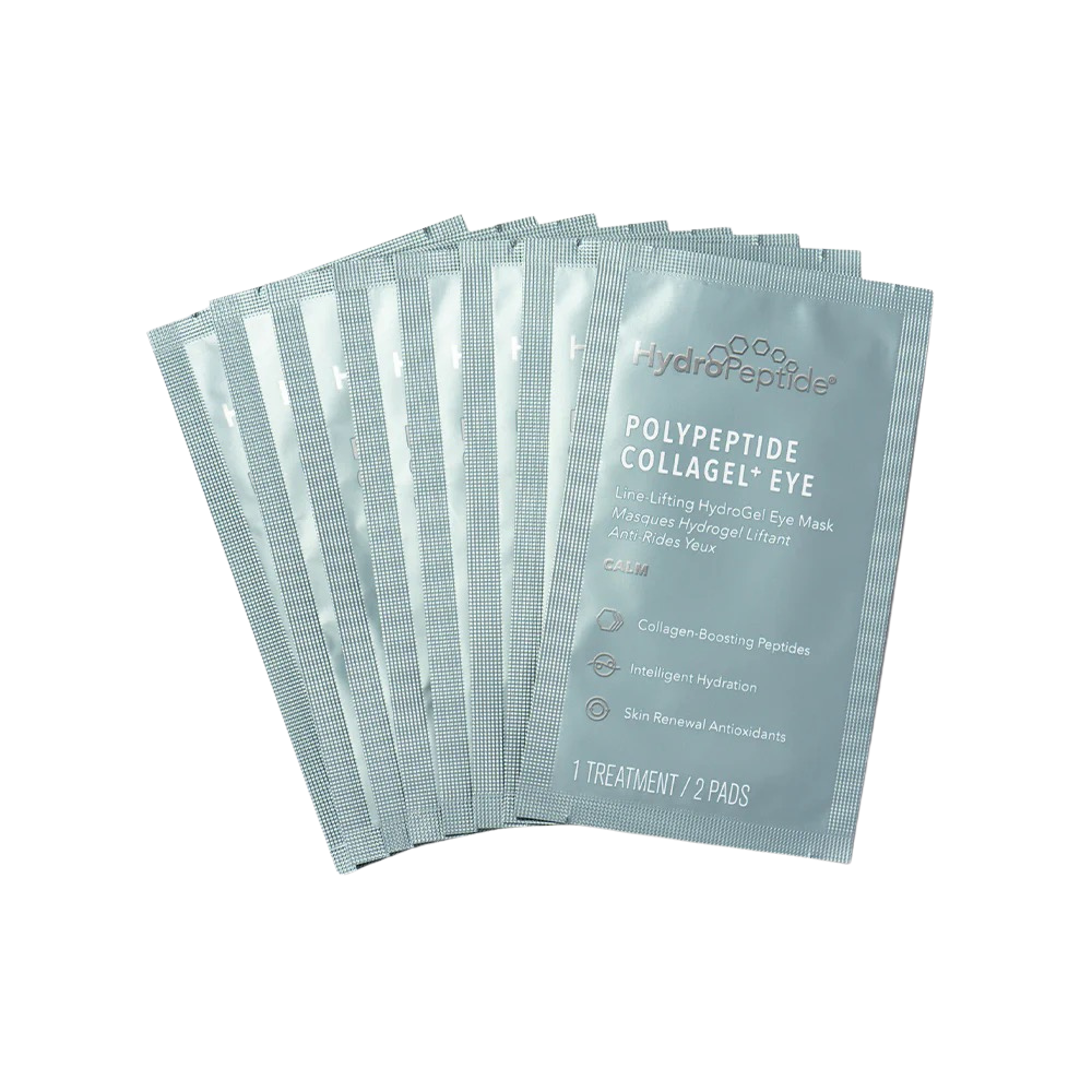 Polypeptide Collagel+ Eye by HydroPeptide – hydrogel eye patches designed for intensive rejuvenation of the delicate eye area, helping reduce the appearance of wrinkles, dark circles and signs of fatigue. Innovative hydrogel technology allows the patches to adhere closely to the skin while delivering active ingredients efficiently.