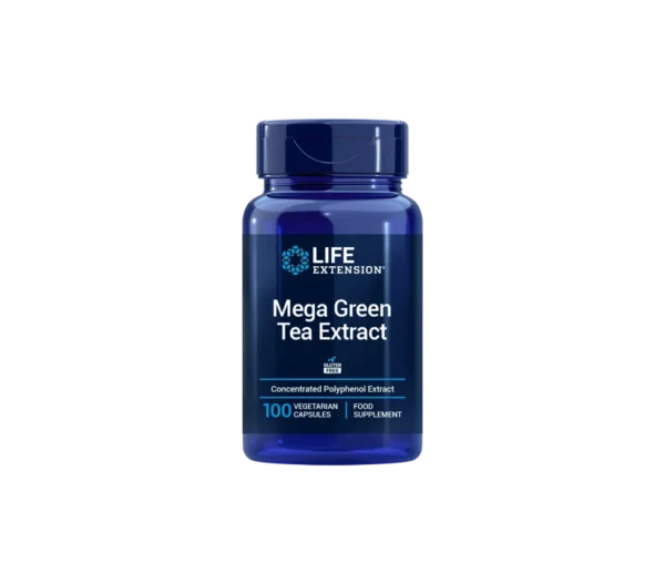Mega Green Tea Extract by Life Extension – dietary supplement with green tea extract (Camellia sinensis), containing polyphenolic compounds, including epigallocatechin gallate (EGCG).