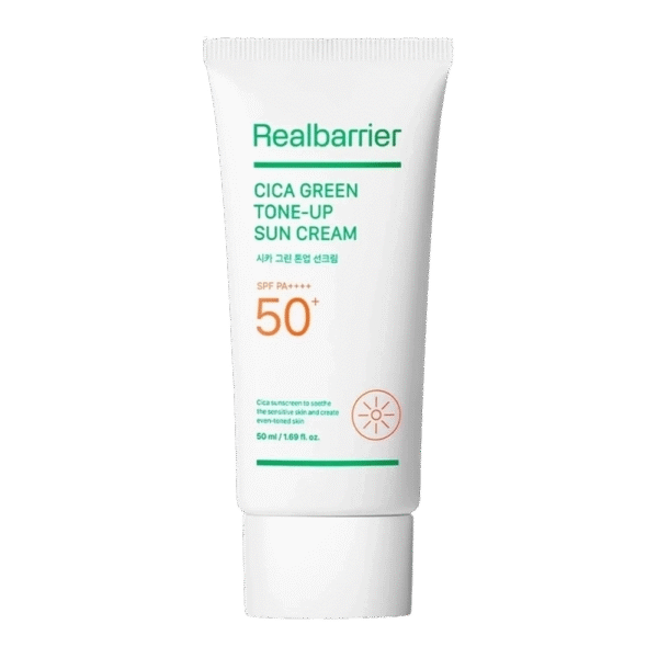 The mineral UV filter in Real Barrier Cica Green Tone-Up Sun Cream creates a barrier that effectively shields the skin from ultraviolet rays and helps prevent burns, dark spots, loss of elasticity and collagen, as well as other visible signs of aging.