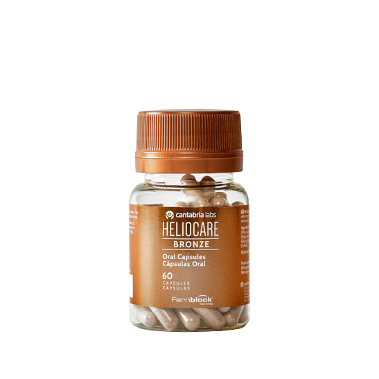 Heliocare Bronze Oral Capsules brändilt Cantabria Labs — toidulisand aktiivsete koostisosade kombinatsiooniga, mis on mõeldud kasutamiseks päikese käes viibimise perioodil.