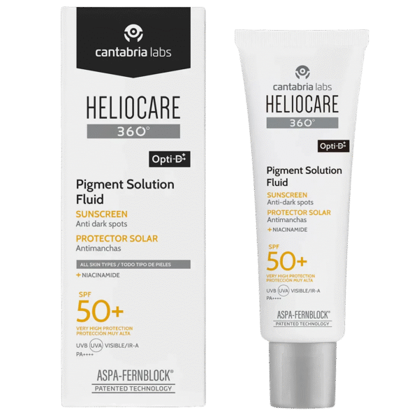 Heliocare 360º Pigment Solution Fluid SPF50 užtikrina visapusišką apsaugą nuo keturių tipų spinduliuotės – UVA, UVB, matomos ir infraraudonos (IR-A) – bei mėlynos šviesos, kurią skleidžia skaitmeniniai įrenginiai. Jo antipoluicinė ir depigmentuojanti formulė padeda išvengti saulės sukeltų dėmių bei nelygaus odos tono, suteikdama odai skaistumo ir tolygumo.