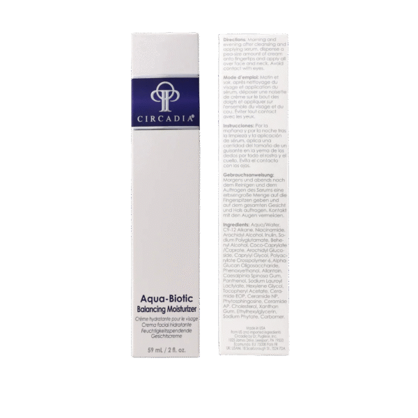 Aqua-Biotic Balancing Moisturizer nuo Circadia yra drėkinamasis kremas, specialiai sukurtas odos drėgmės pusiausvyrai atkurti ir drėkinti. Kremas yra praturtintas probiotikais ir maitinamosiomis medžiagomis, kurios padeda atkurti natūralų odos mikrobiomą ir sustiprinti jos apsauginį barjerą. Kremas efektyviai mažina uždegimą ir paraudimą, drėkindamas ir atstatydamas odą po aplinkos veiksnių poveikio. Tinka visiems odos tipams, įskaitant jautrią odą, ir padeda išlaikyti optimalų drėgmės lygį visą dieną.