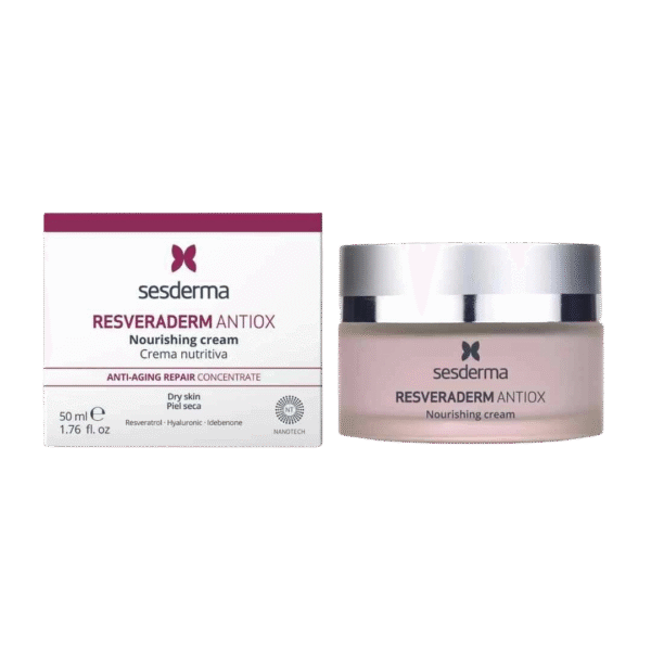 RESVERADERM Antiox Nourishing Cream nuo Sesderma yra intensyviai maitinantis kremas, pasižymintis ryškiu antioksidaciniu poveikiu, sukurtas apsaugoti odą nuo oksidacinio streso ir palaikyti jos tankį, elastingumą bei prižiūrėtą išvaizdą. Formulė orientuota į komforto atkūrimą, odos apsauginių mechanizmų stiprinimą ir gaivesnio, tolygesnio bei labiau švytinčio odos atspalvio palaikymą.