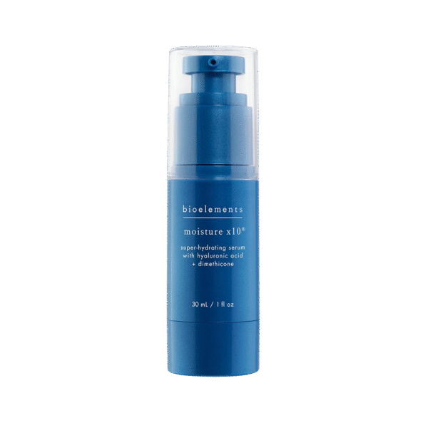 Moisture x10 no Bioelements – īpaši mitrinošs sejas serums ar hialuronskābi, kas paredzēts ātrai mitrināšanai un optimāla mitruma līmeņa uzturēšanai. Formula palīdz piesaistīt mitrumu, vizuāli uzlabo līniju un grumbu izskatu un sagatavo virsmu turpmākajai kopšanai, uzlabojot mitrinošā krēma efektivitāti.