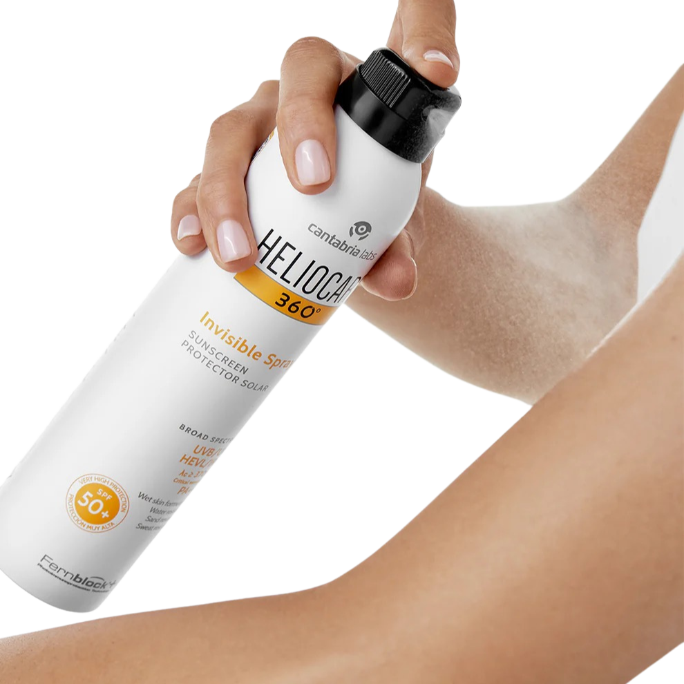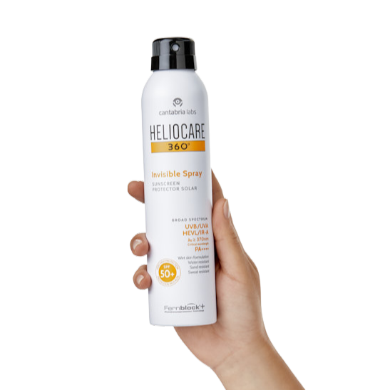 Heliocare 360º Invisible Spray SPF50+ ir inovatīvs caurspīdīgs saules aizsarglīdzeklis ķermenim, kas paredzēts tiem, kuri meklē uzticamu, ērtu un nemanāmu aizsardzību pret sauli. Tās uzlabotā formula nodrošina plaša spektra SPF50+ aizsardzību pret UVA, UVB, redzamo un infrasarkano starojumu, palīdzot novērst fotonovecošanos, pigmentācijas plankumus un ādas sausumu.