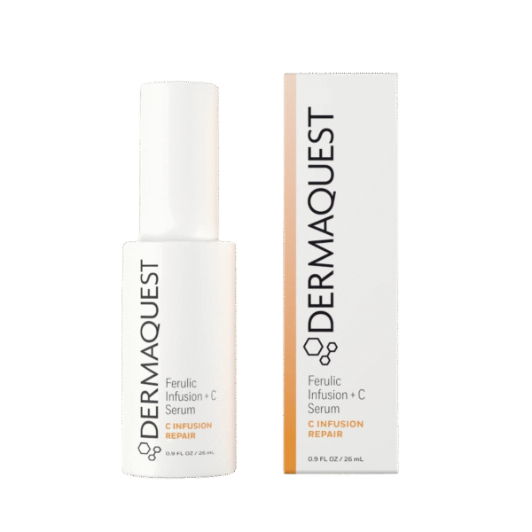 Ferulic Infusion + C Serum no Dermaquest ir spēcīgs antioksidantu serums, kas paredzēts ādas aizsardzībai pret fotonovecošanos, ādas toņa uzlabošanai un tvirtuma palielināšanai. Formula apvieno tīru, stabilu C vitamīnu, E vitamīnu, ferulskābi un augu antioksidantus, kas palīdz neitralizēt brīvos radikāļus un samazināt apkārtējās vides negatīvo ietekmi.