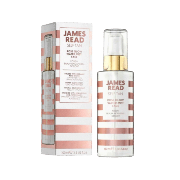 Rose Glow Water Mist no James Read ir sejas sprejs uz organiskā rožūdens bāzes, kas jau pēc pirmās lietošanas piešķir ādai pamanāmu zeltainu mirdzumu. Toni iespējams pakāpeniski pastiprināt, atkārtoti lietojot līdzekli, tādējādi iegūstot dabisku un vienmērīgu rezultātu. Īpaši vieglā, ūdens tekstūra acumirklī atsvaidzina ādu un ir patīkama lietošanā visas dienas garumā.