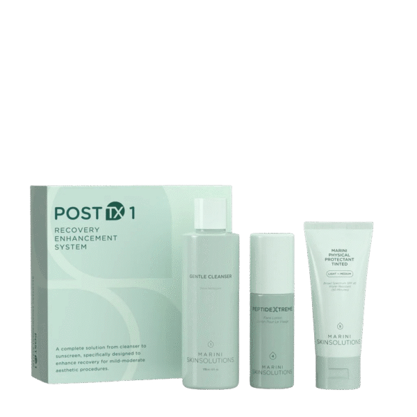 Post TX 1-Recovery Enhancement System no Marini SkinSolutions ir pēcprocedūru kopšanas komplekts, kas izstrādāts, lai atbalstītu ādas atjaunošanos pēc dažādas intensitātes estētiskajām procedūrām – no pīlingiem līdz agresīvākām lāzerprocedūrām. Sistēma palīdz padarīt atjaunošanās periodu komfortablāku, samazināt redzamo apsārtumu un atbalstīt labākus gala rezultātus.