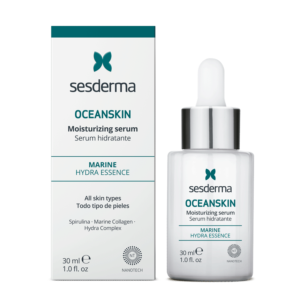 OCEANSKIN Moisturizing Serum no Sesderma ir augstas veiktspējas mitrinošs serums, kas izstrādāts, lai atjaunotu ādas mitruma līdzsvaru, uzlabotu kopējo ādas kvalitāti un atbalstītu tās tvirtumu un elastību. Formula balstās uz jūras izcelsmes biokomponentiem un darbojas kā dziļas, daudzlīmeņu mitrināšanas avots, palīdzot ādai izskatīties blīvākai, gludākai un koptākai.