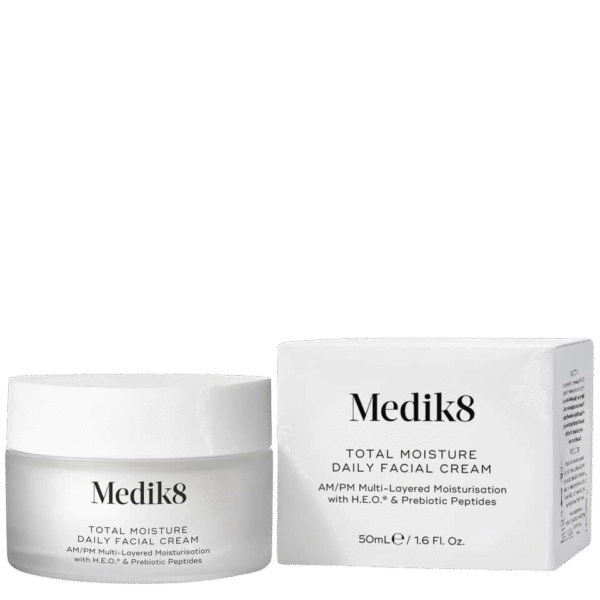 Medik8 Total Moisture Daily Facial Cream — ежедневный увлажняющий крем для лица, разработанный для поддержания оптимального уровня увлажнённости кожи и её комфортного состояния в течение всего дня. Крем делает кожу заметно более гладкой, упругой и визуально здоровой.