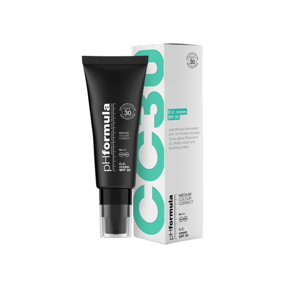 C.C. Cream SPF30 (Medium) от pH Formula — это многофункциональный корректирующий крем с тоном и высокой степенью защиты от солнца, созданный для кожи в период восстановления и повышенной чувствительности. Он помогает визуально выровнять тон, замаскировать покраснения и несовершенства, одновременно защищая кожу от UVA- и UVB-излучения, которое ускоряет процессы старения и замедляет восстановление кожи.